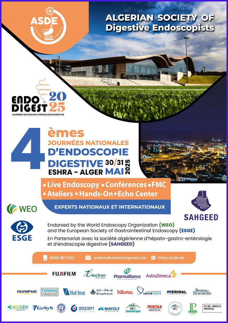 3ème Congrès National de l’Association Algérienne de Chirurgie Digestive et Hépato biliaire (AACDHB) qui se déroulera les 24 et 25 avril 2026 📌'Hôtel El Aurassi, à Alger.