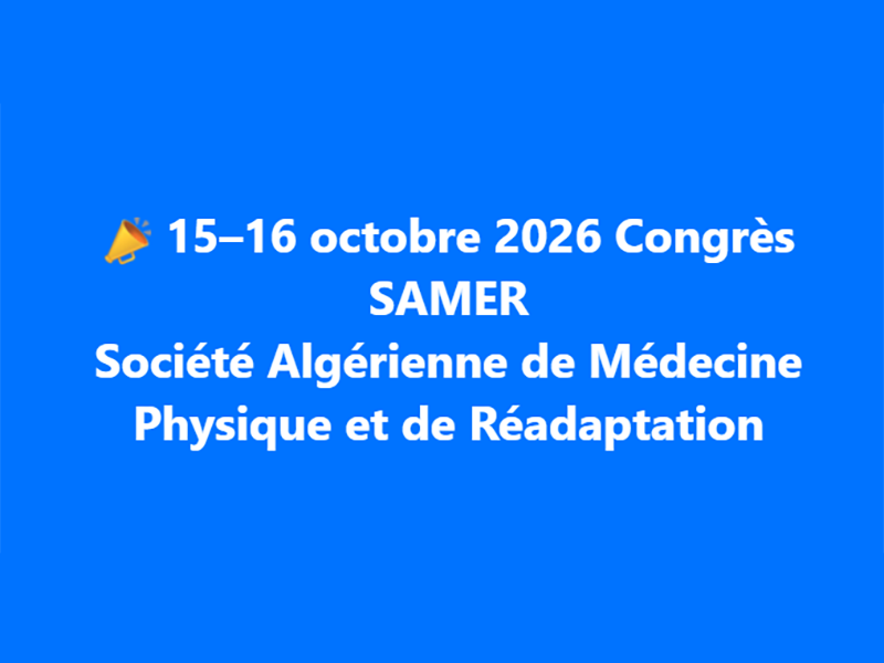 La Société Algérienne de la Chirurgie de la Hanche et du Genou (SAGHA) organise, du 9 au 11 avril 2026, 📌Tlemcen, la 6ᵉ rencontre ROR Dédiée à la Raideur Articulaire