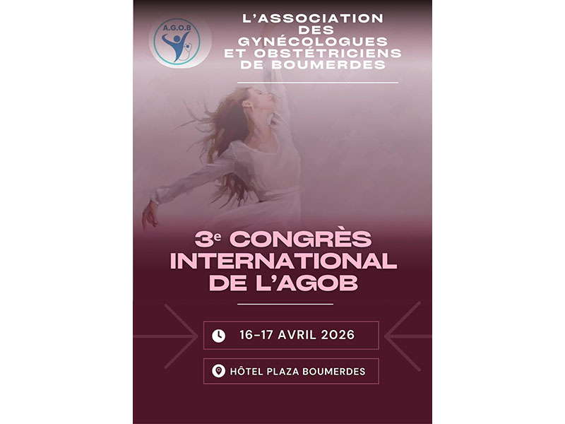 1er Congrès International de l’Association des Gynécologues Obstétriciens Libéraux de Béjaia (AGOLB) du 02, 03 et 04 avril 2026 📌 Hôtel SALDAE – Béjaia