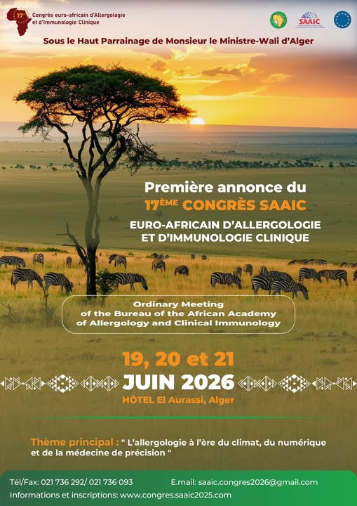 21e Congrès Francophone d'allergologie (CFA), coorganisée par la Société Française d'Allergologie (SFA) et l'ANAFORCAL, se tiendra du 21 au 24 avril 2026 📌au Palais des Congrès de Paris (Porte Maillot).