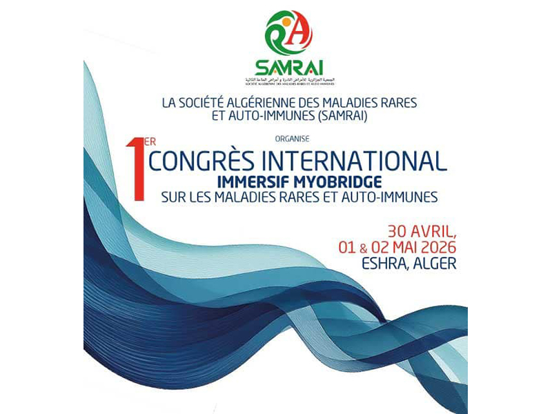 1er Congrès International (Immersif Myobridge) sur les Maladies Rares et Auto-Immunes le 30 Avril - 01 et 02 Mai 2026 📌à l'école supérieure de l'hôtellerie et de restauration ESHRA-Alger