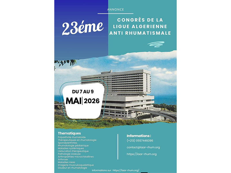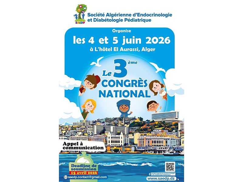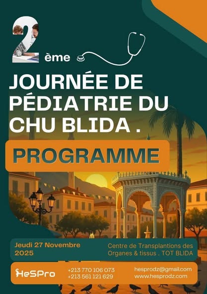 44émes CONGRÈS NATIONAL DE PÉDIATRIE & 3éme CONGRÈS DES SOCIÉTÉS ALGÉRIENNES DES SPÉCIALITÉS PÉDIATRIQUES du 4 , 15 & 16 JANVIER 2026 📌HÔTEL EL AURASSI