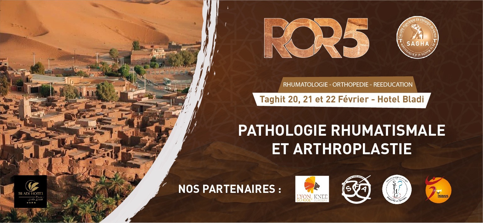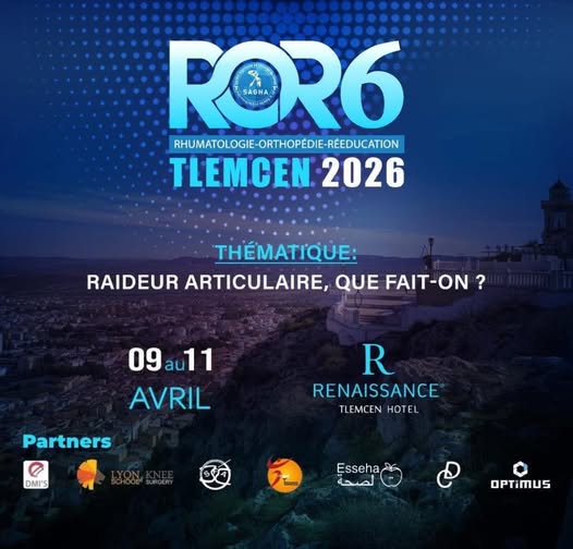 La Société Algérienne de la Chirurgie de la Hanche et du Genou (SAGHA) organise, du 9 au 11 avril 2026, 📌Tlemcen, la 6ᵉ rencontre ROR Dédiée à la Raideur Articulaire