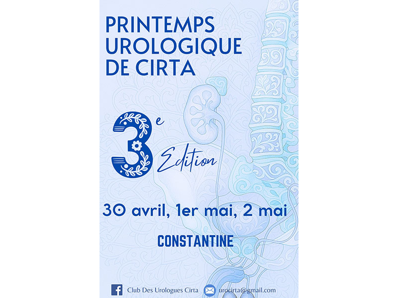 La Société Algérienne d'Anesthésie, de Réanimation, de Soins Intensifs et des Urgences (SAARSIU), organise les 21 émes journées de printemps les 15 et 16 mai 2026 📌à Batna (Université BATNA 1)