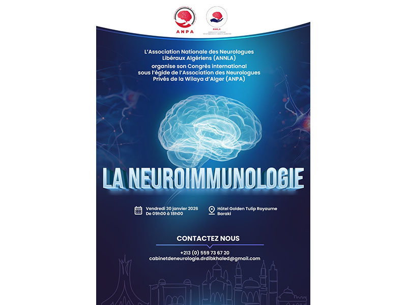 L’Association Nationale des Neurologues Libéraux Algériens (ANNLA) organise son congrès international sous l'égide de l'association des Neurologues Privés 📌Vendredi 30/01/ 2026 Hôtel Golden Tulip Royaume – Alger